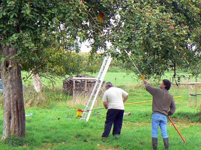 De oudere bomen van de hoogstamboomgaard hadden een mooie oogst voortgebracht.